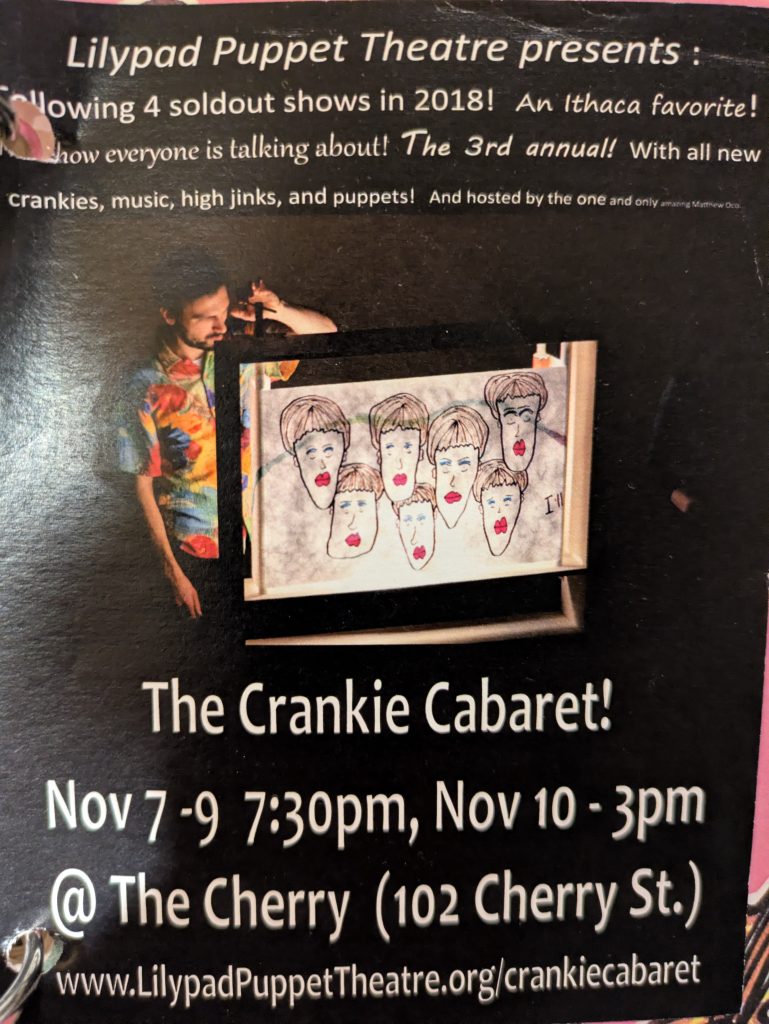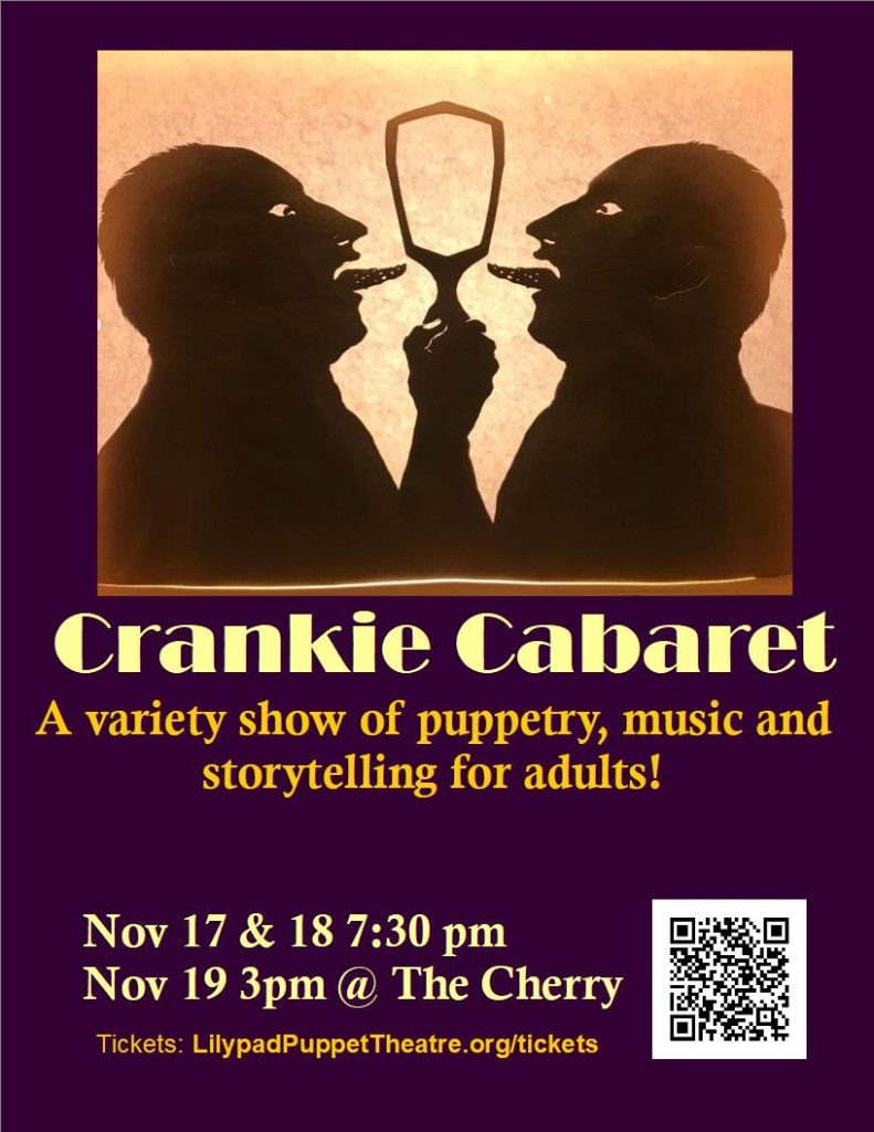 Lilypad Puppet Theatre produces an annual Crankie Cabaret in the Fall. We bring together artists, puppeteers, storytellers & musicians for this fabulous weekend variety show. For 18+.